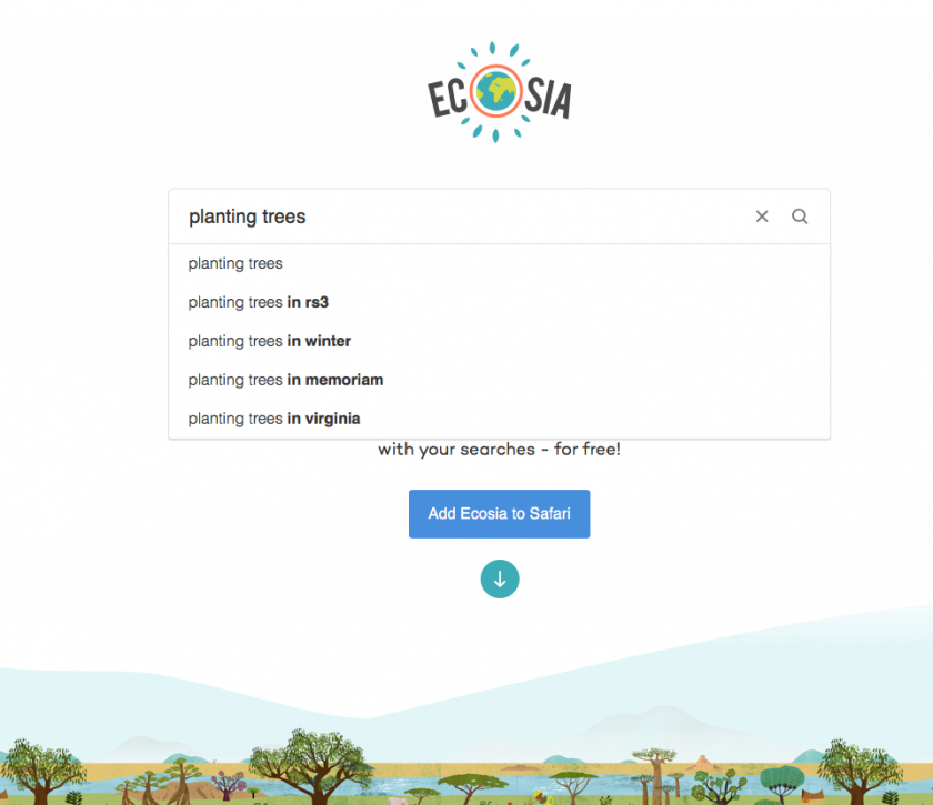 Za rok používání Ecosie (www.ecosia.org) uživatel internetu pomůže na svět průměrně 115 stromům. Ecosie sídlící v Německu a fungující před 10 let pohání své servery pomocí solárních panelů a přebytečnou energii vrací do sítě, takže se označuje za karbonově negativní.